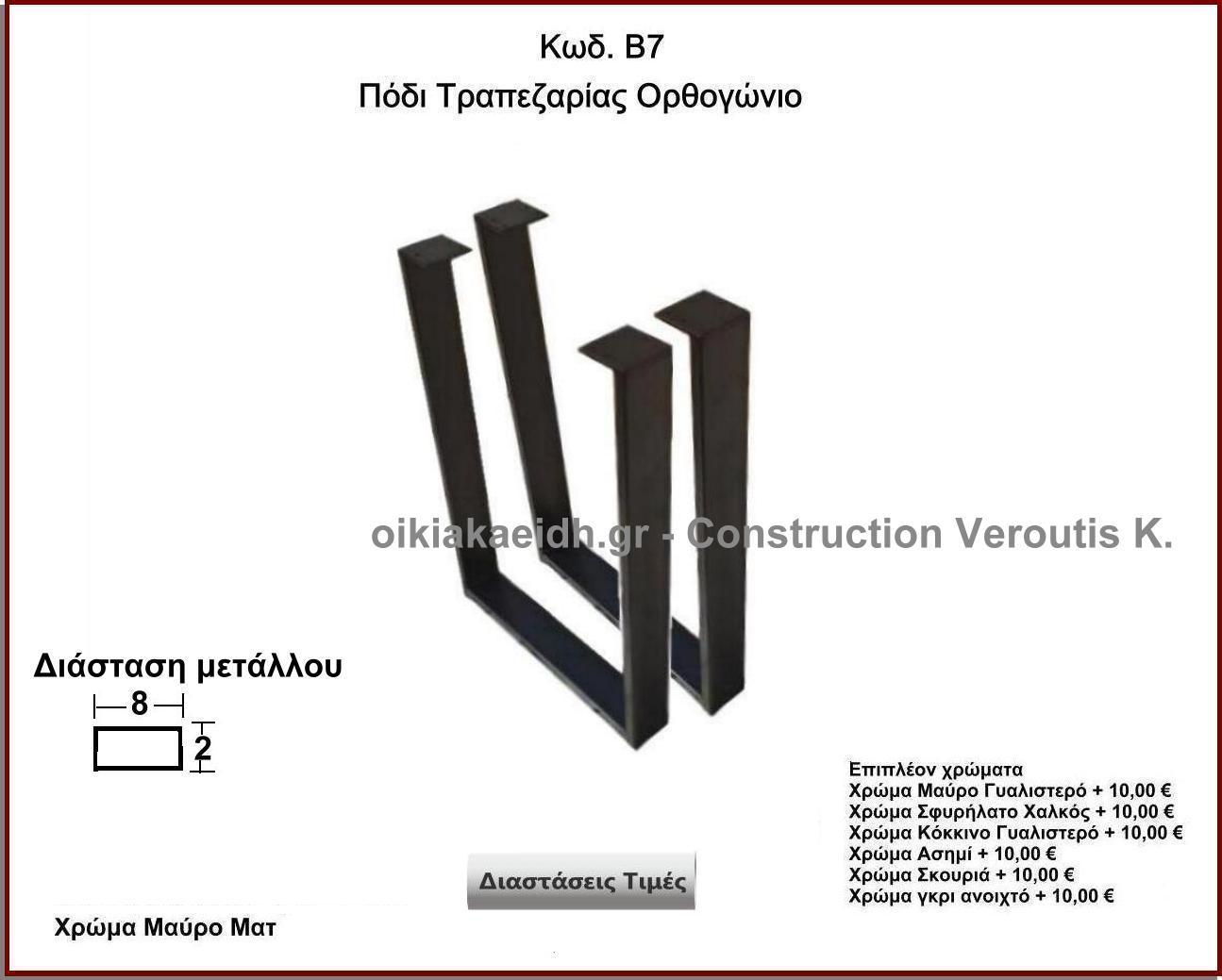 Κατασκευάζουμε μεταλλικές βάσεις τραπεζιών, πόδια για καναπέδες, πόδια επίπλων, και άλλα προϊόντα με παραγγελία. Όλες οι βάσεις είναι βαμμένες ηλεκτροστατικά, όλες οι εικόνες είναι κατασκευή μας από την αρχή μέχρι το τέλος.